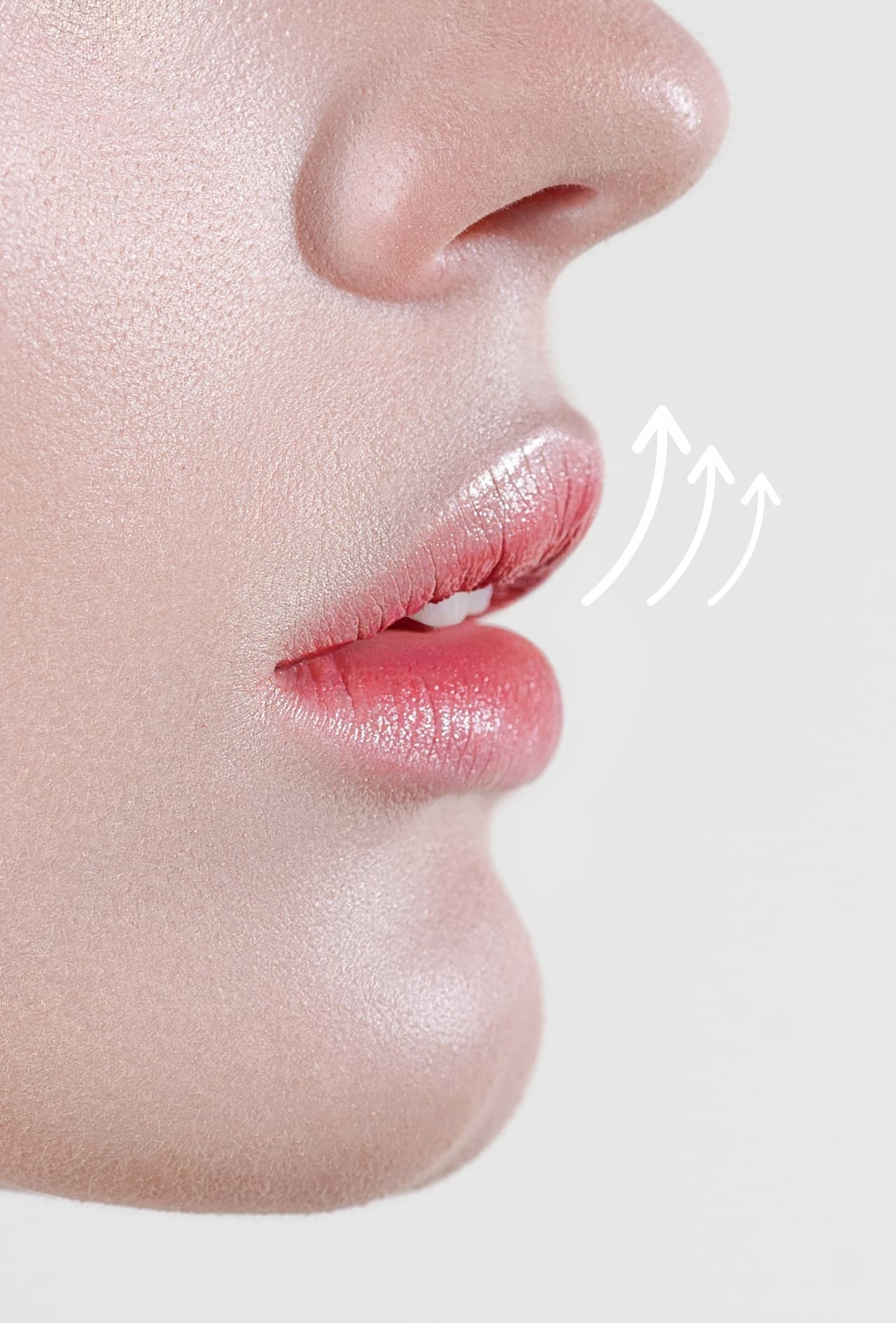 - Οπτική αύξηση του όγκου του άνω χείλους, χωρίς να προστίθεται επιπλέον υλικό.